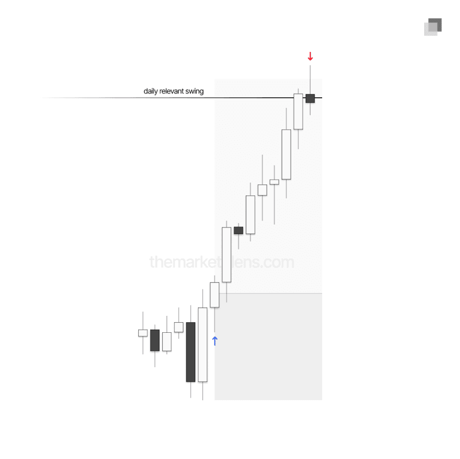Trading into significant daily relevant swings is powerful as a draw because it establishes a target at the extreme where no prior level carries the same weight on the market. This influences scaling in two distinct ways.