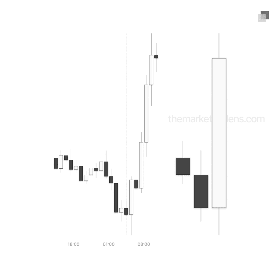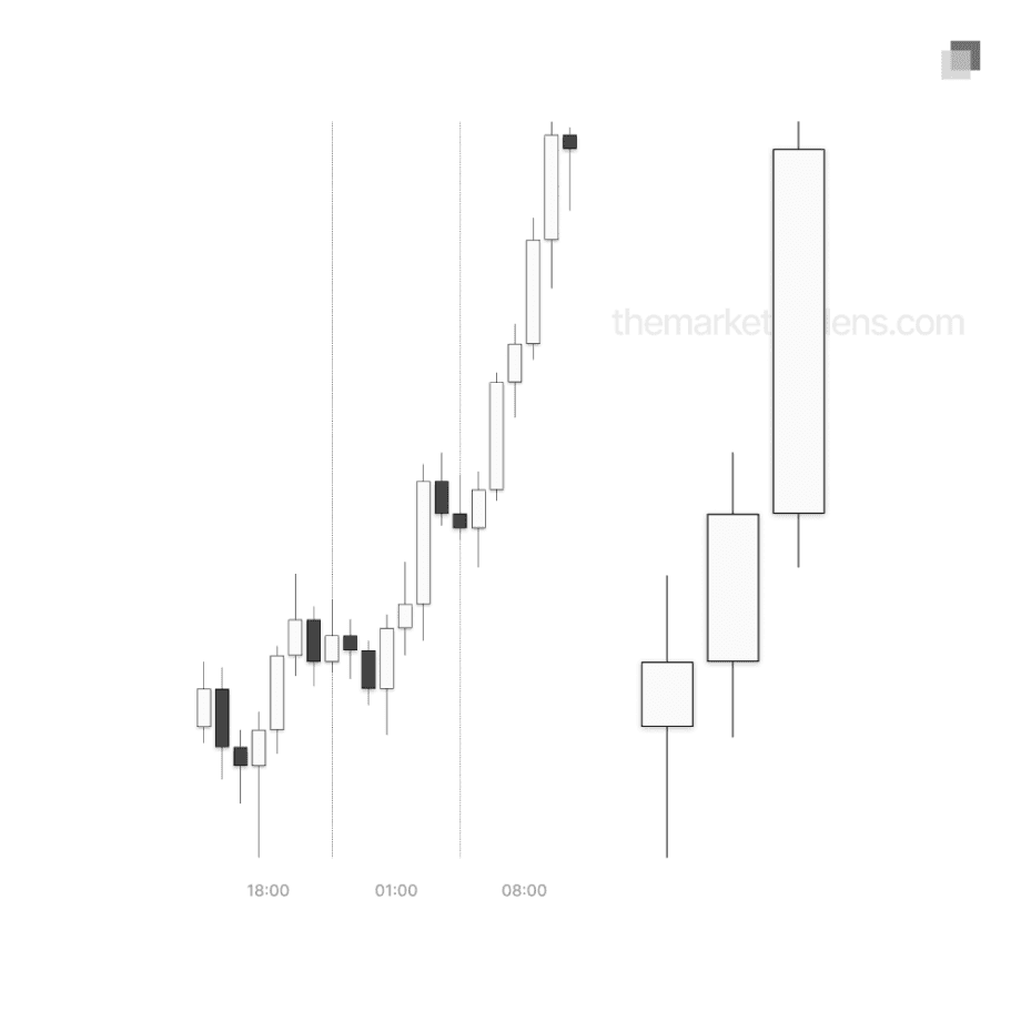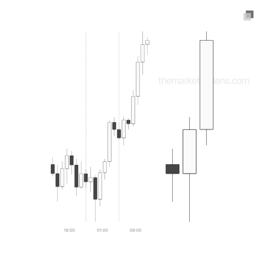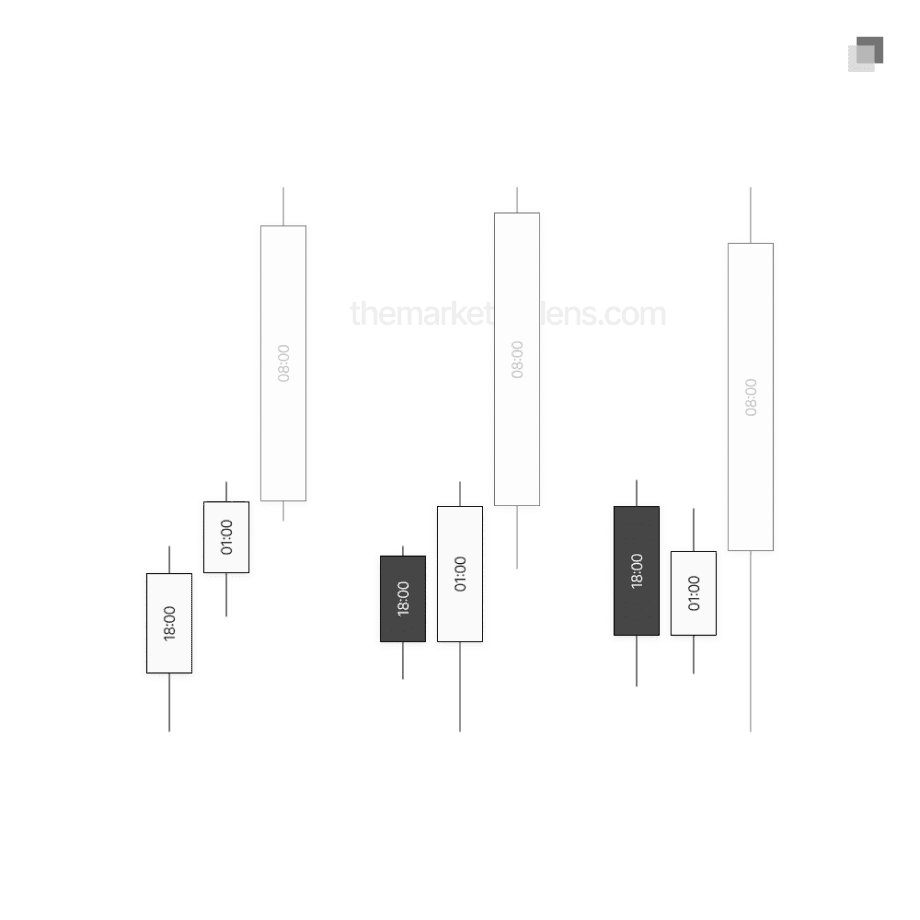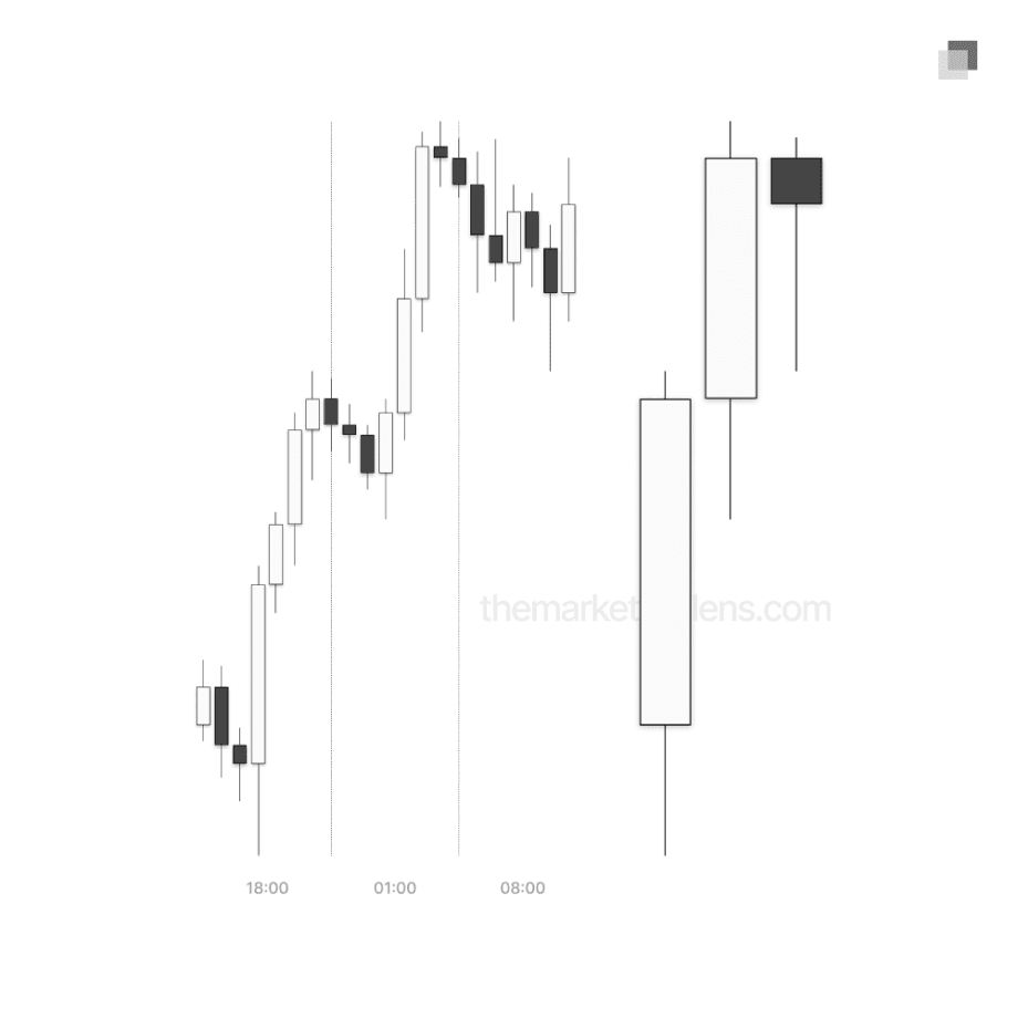 18:00 candle: Asia session (18:00-01:00)