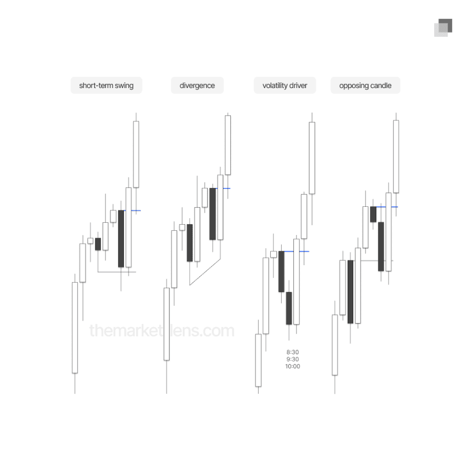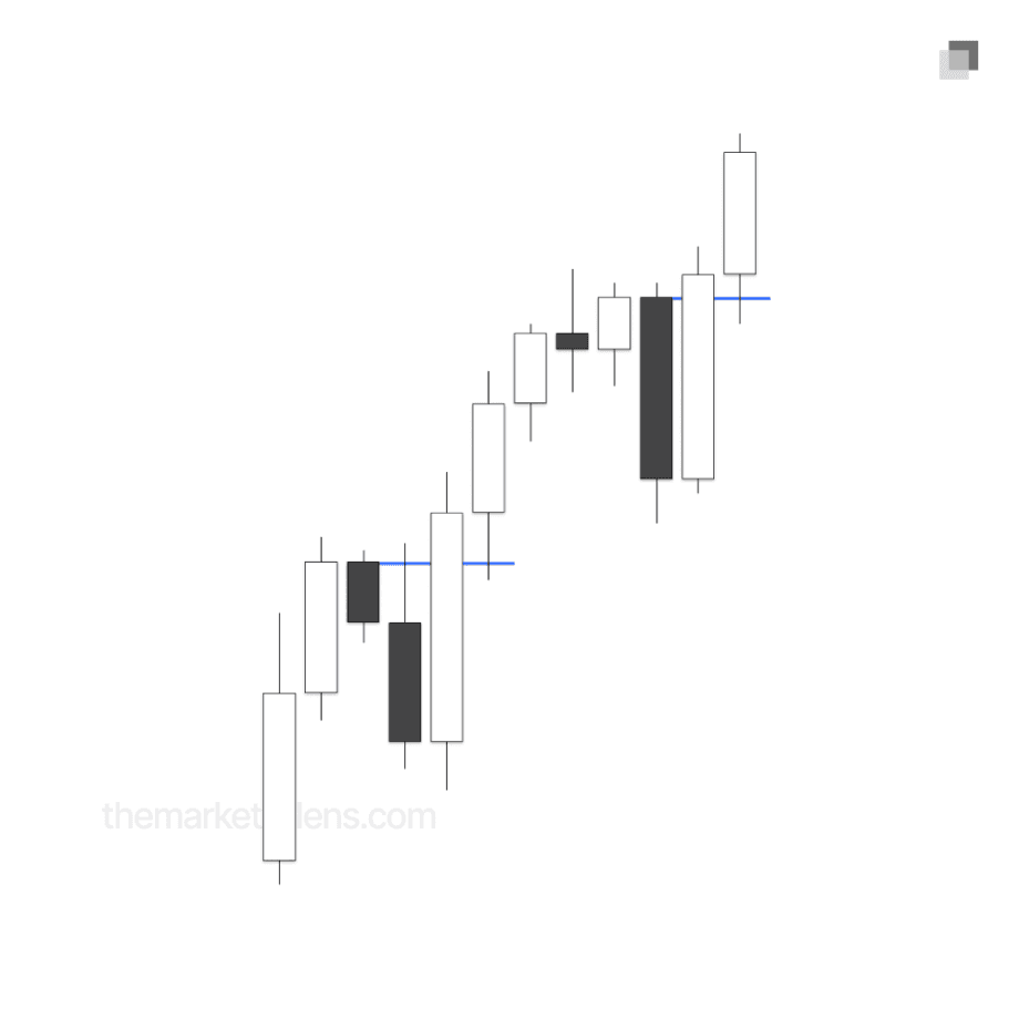 While the baseline defines what makes opposing candles valid in continuation, additional confluences can be applied to increase quality and probability.