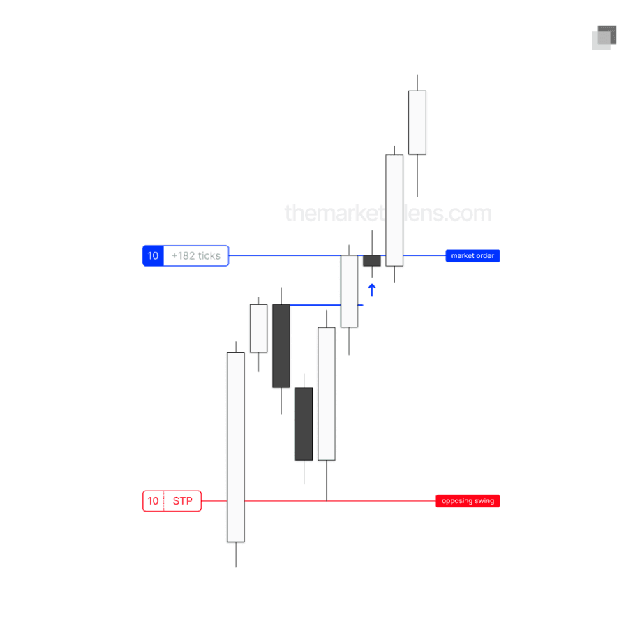 Once a valid close through opposing candles aligned with the continuation signature, entries are confirmed and valid to be taken. As long as the risk-to-reward remains favorable from the point of entry to the stop loss, a market order is executed. This is the preferred method because a retest of the opposing close candles used in the entry signature is neither required nor expected. The close through that confirms the signature is the only requirement. For this reason, entries are executed with market orders rather than limit orders.