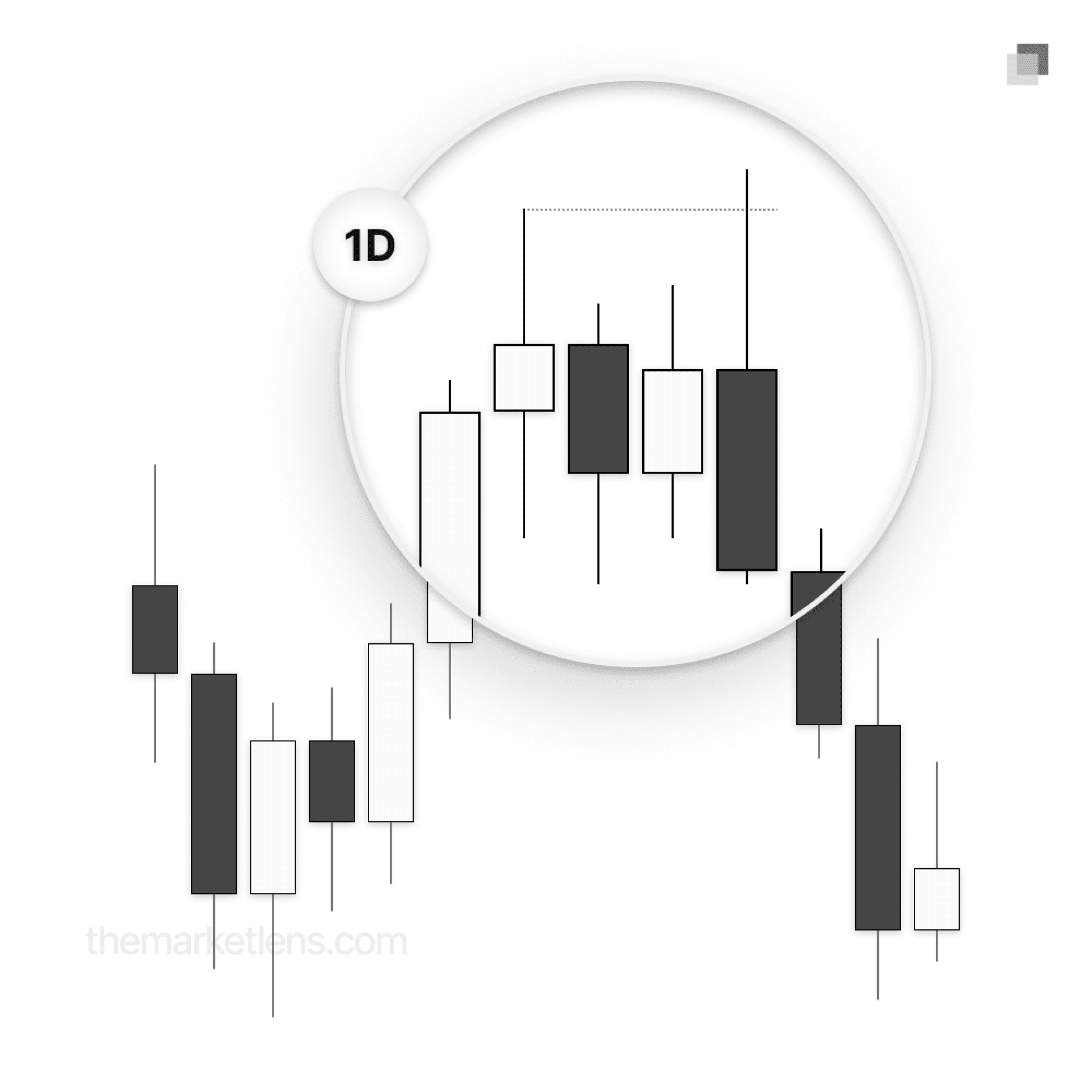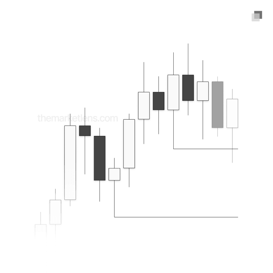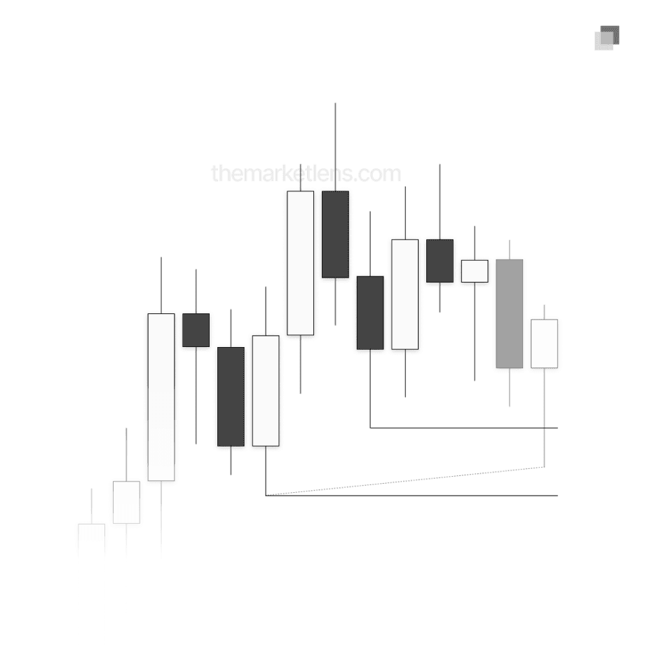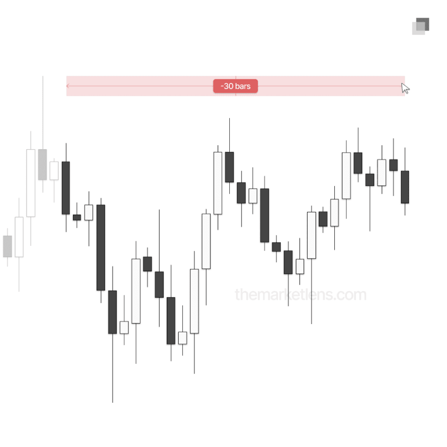 When identifying relevant swings on the daily timeframe, the lookback is limited to a maximum of 30 daily candles. Any price action outside of this window is not considered. This rule forces the focus to remain on recent market signatures, which is essential when looking to capitalize on short-term moves.