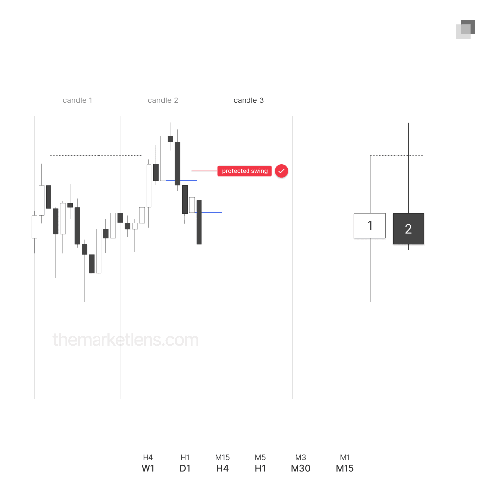 It is called a positional entry because the trade is positioned at the open of the new higher timeframe candle, with the expectation that price will either expand immediately or form its wick while respecting the lower timeframe protected swing. Although continuations may sometimes provide an additional entry, price will often expand right away and not offer further opportunities.