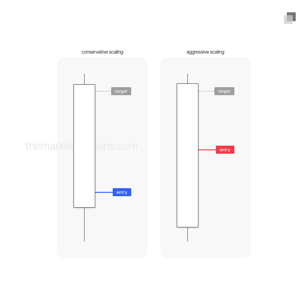 Where price sits within the daily range or higher timeframe candle plays a key role in how position scaling is managed. From the OHLC section, it is clear that expansion candles have small wicks and large bodies. When entering early in the higher timeframe candle and near the opening price, scaling can be more conservative, as further expansion is still expected. However, when entering midway through the expansion, scaling should be more aggressive, since the range is more likely to be nearing exhaustion.