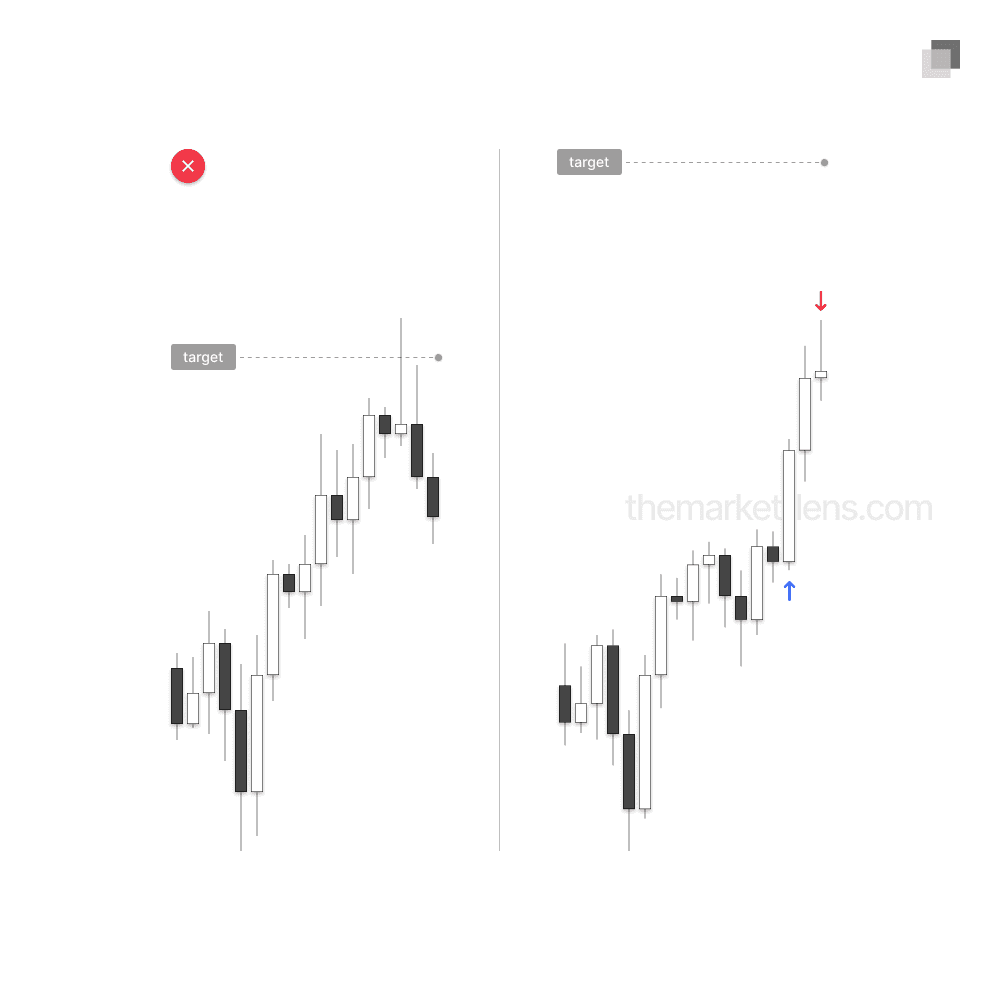 Another factor that influences profit taking is correlated assets. If a correlated asset reaches its target and begins forming a reversal, it can serve as a signal to consider partialing or exiting the position. A reversal in the correlated asset often carries over, increasing the likelihood that the current asset will also reverse.