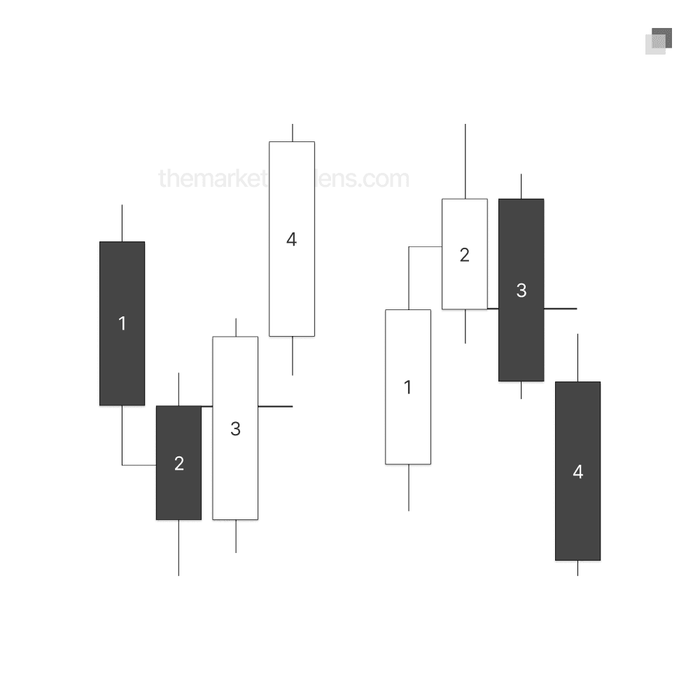 Within the Fractal Model, there are two types of candle closures: candle 2 closure and candle 3 closure. In a candle 3 closure, price fails to form a candle 2 closure. While still anticipating a reversal at the relevant point of interest, allow candle 3 to print. If candle 3 closes over the opening price (body) of candle 2, a candle 3 closure is established. This allows for the anticipation of a continuation in candle 4, provided there are open targets for expansion.