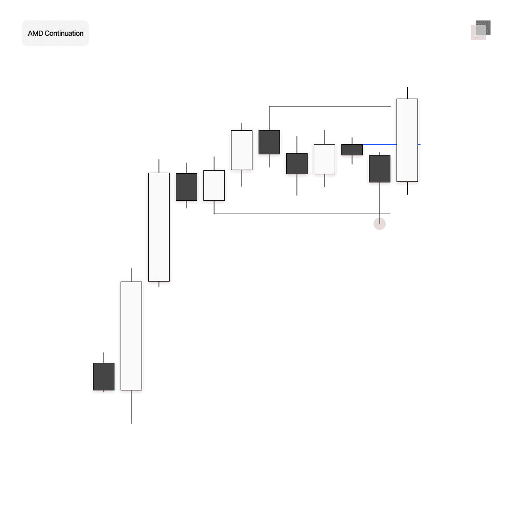 If price expands and then consolidates, seek manipulation of the consolidation low, this will trigger the next expansion (AMD).