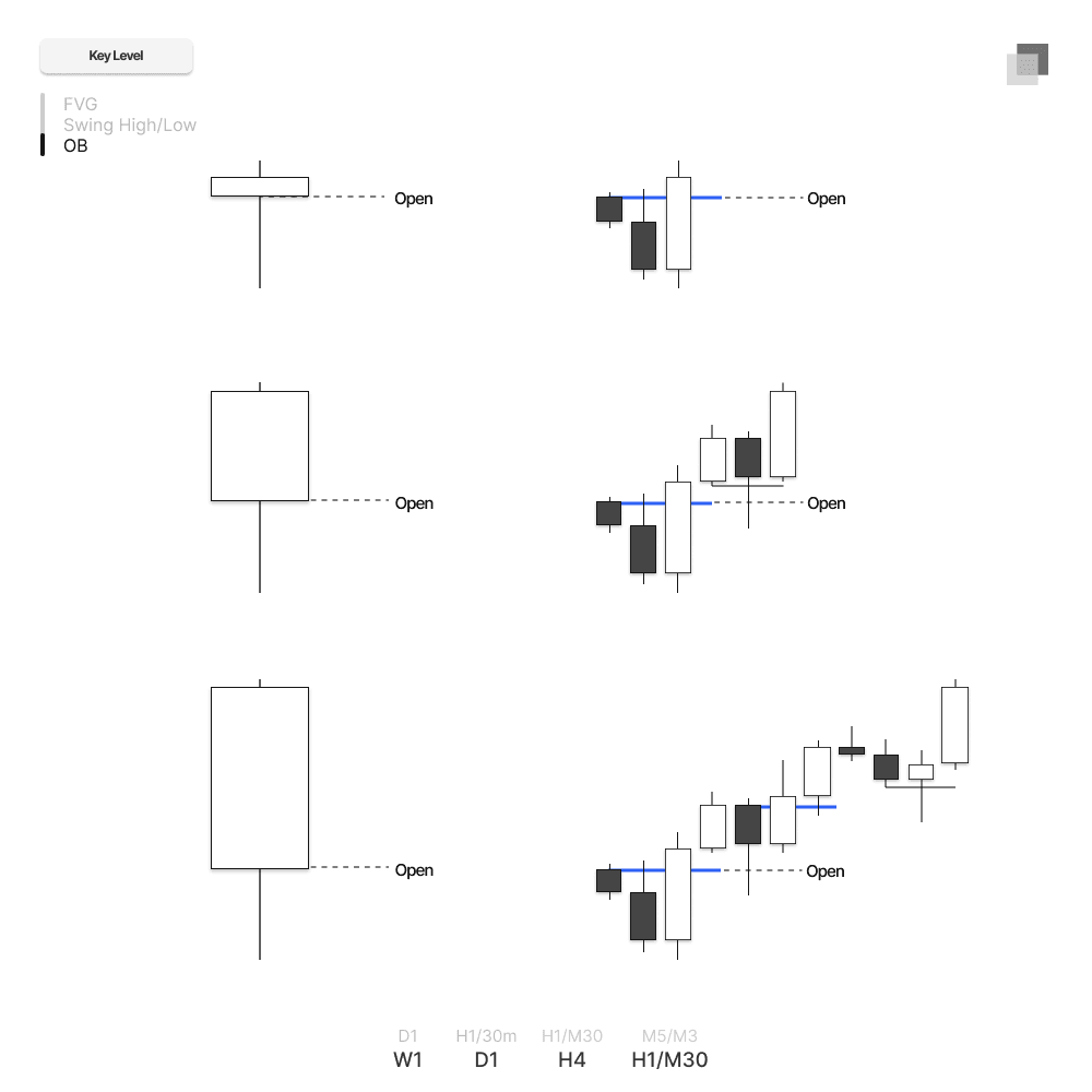 When the candle expands away from its opening price, it forms a order block within its range that can be used for continuation. The order block also serves as an invalidation level. If price fails to respect it, continuation is unlikely.