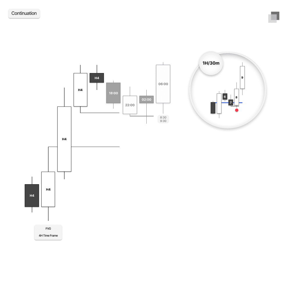 Within the 6 AM 4H candle, pair a driver for reversal from a 1H/30m key level within daily continuation.