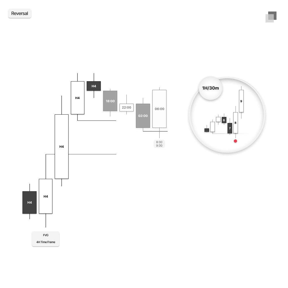 Within the 6 AM 4H candle, pair a driver with reversal from a 1H+ key level forming a New York reversal profile.