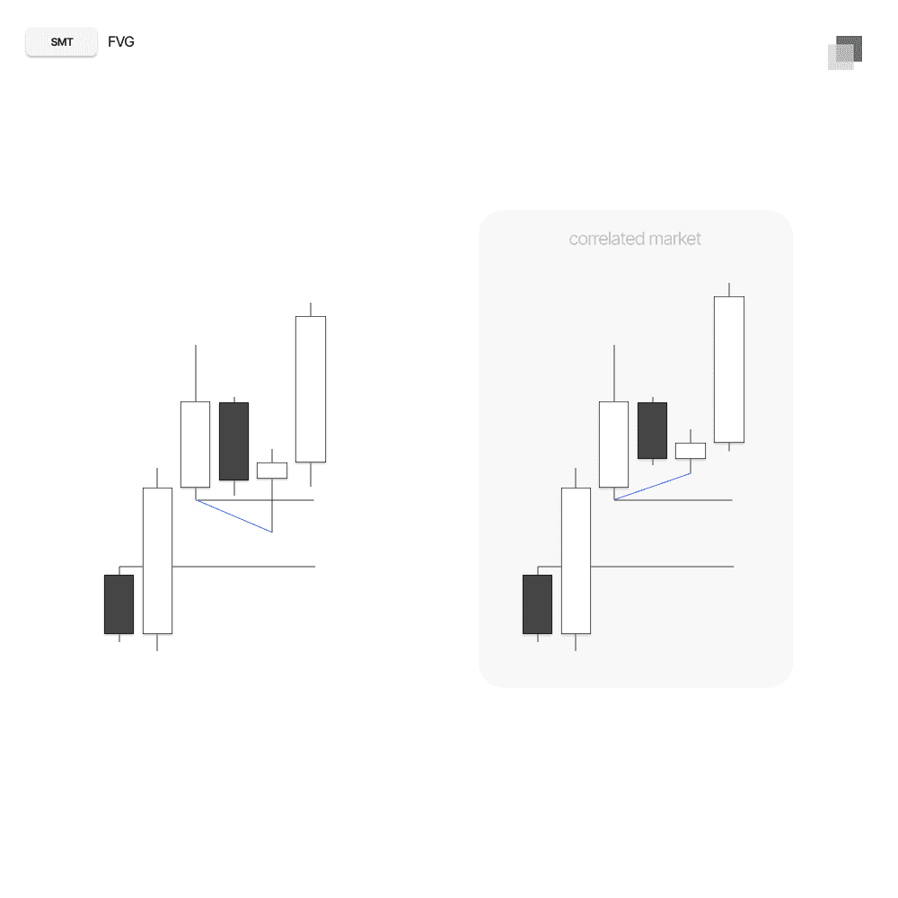 SMT is a divergence between correlated assets that can signal reversals, look for SMT with highs and lows and FVG’s for potential reversals.