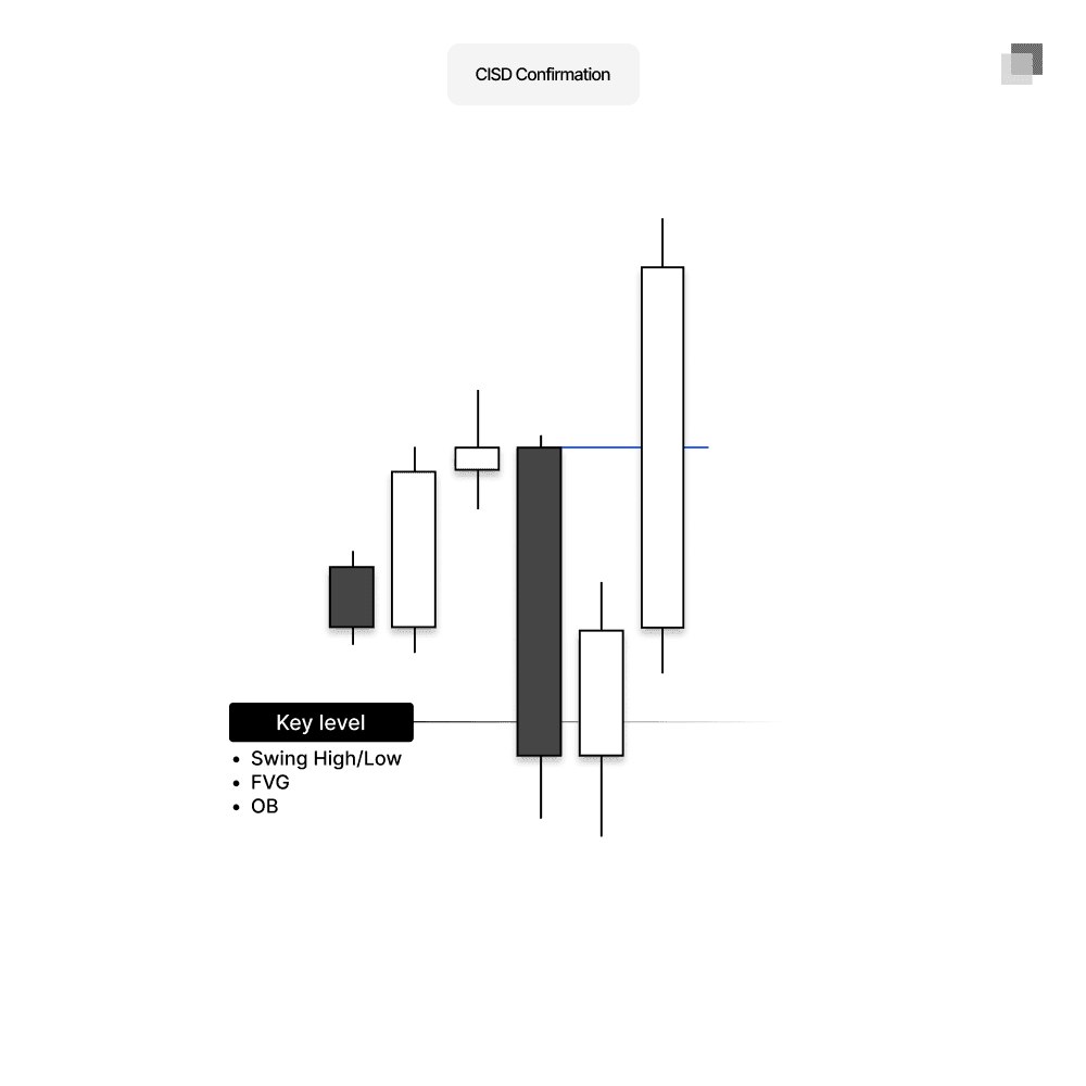 A CISD is the reversal confirmation away from a key level.