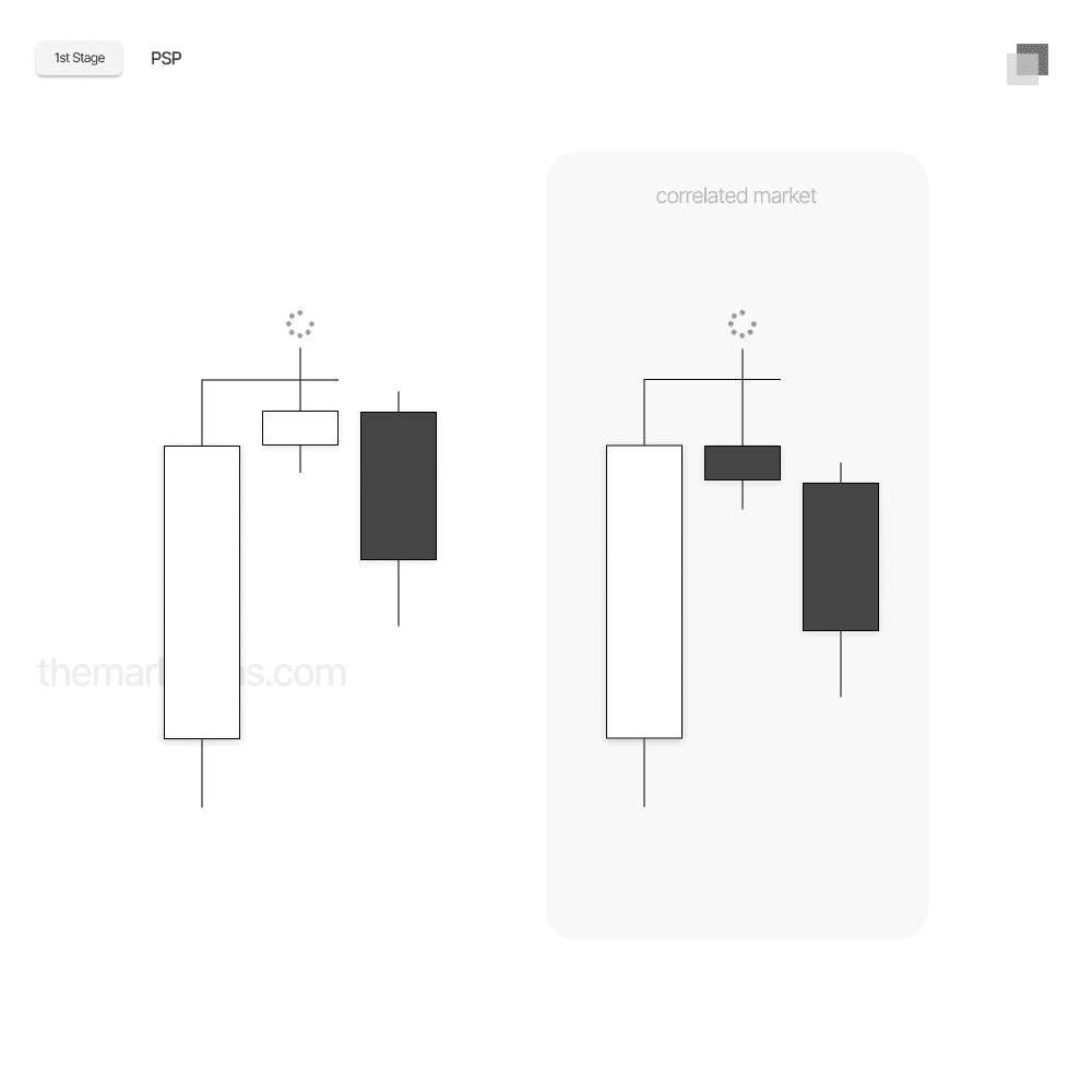 A PSP is confirmed by an SMT between candle 2 and candle 3, forming a two-stage SMT.