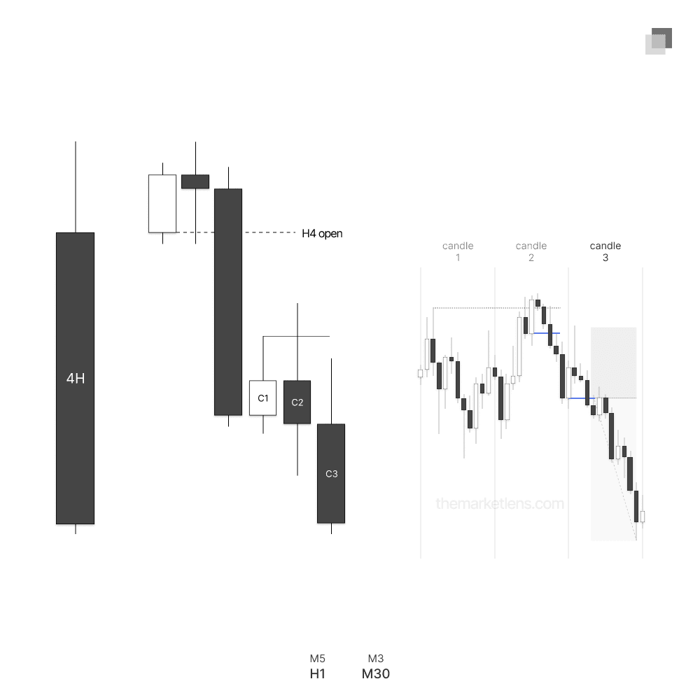 Using the TTrades fractal model to confirm 4H highs and lows and align with the 4H expansion, we then use the TTFM flowchart to align the lower time frames (5m/3m) for entry.