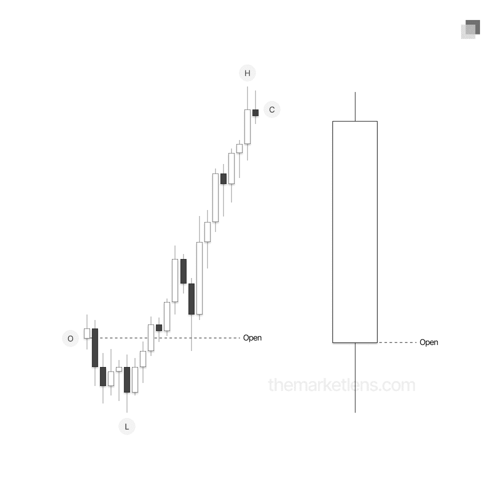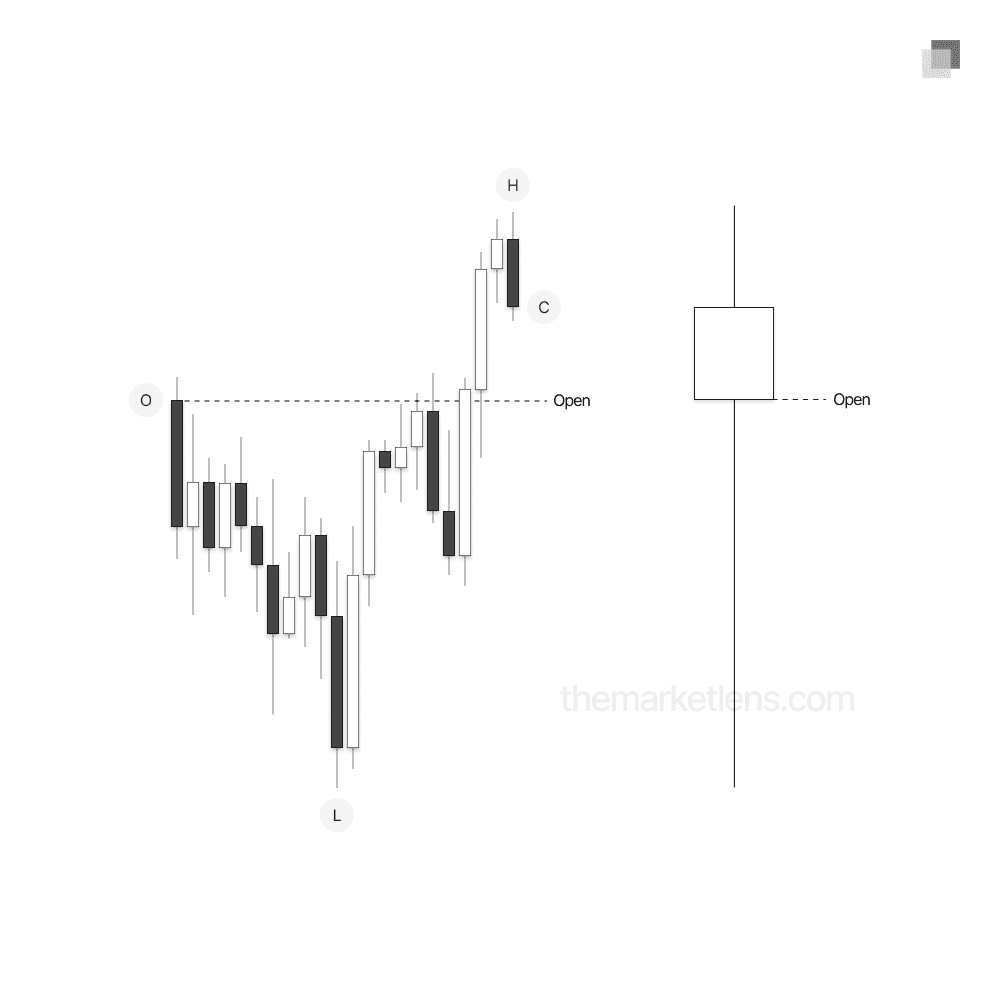 Open Low High Close (OLHC) is the foundation of each candlestick formation. Every candle consists of an open, a low, a high, and a closing price. Understanding OLHC allows traders to analyze how higher timeframe candles are constructed from lower timeframe candles, providing the basis for trading expansion candles.
